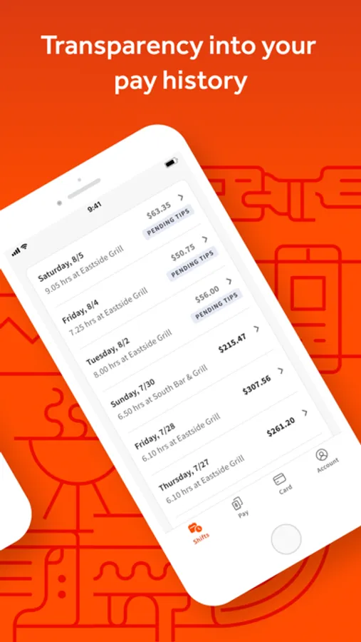 Tips and wages available for Toast PayOut will appear in-app after your shift(1)