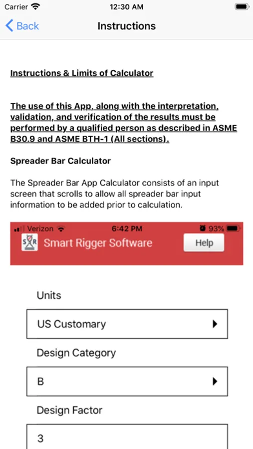 Spreader Bar App calculates loading on the spreader bar pipe, slings, and shackles for a wide range of lifting configurations while calculating and reporting ASME BTH-1 calculations. Three options of Crosby shackle types are available to choose from in this version of the app, as well as three options of slings, 1-Part Mechanical Spliced IWRC (EIPS, 6X19), STRAND Mech. Splice Grommet IWRC (EIPS, 6X19), and Polyester Endless Round slings, for a vertical and vertical basket configuration. Provides spreader bar capacity charting, and report generation ready to email results.