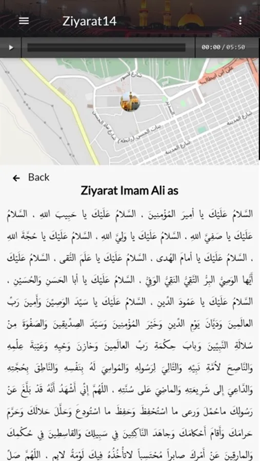 Please note you need internet connection to be able to play ziyarat audios and view the ziyarat map.