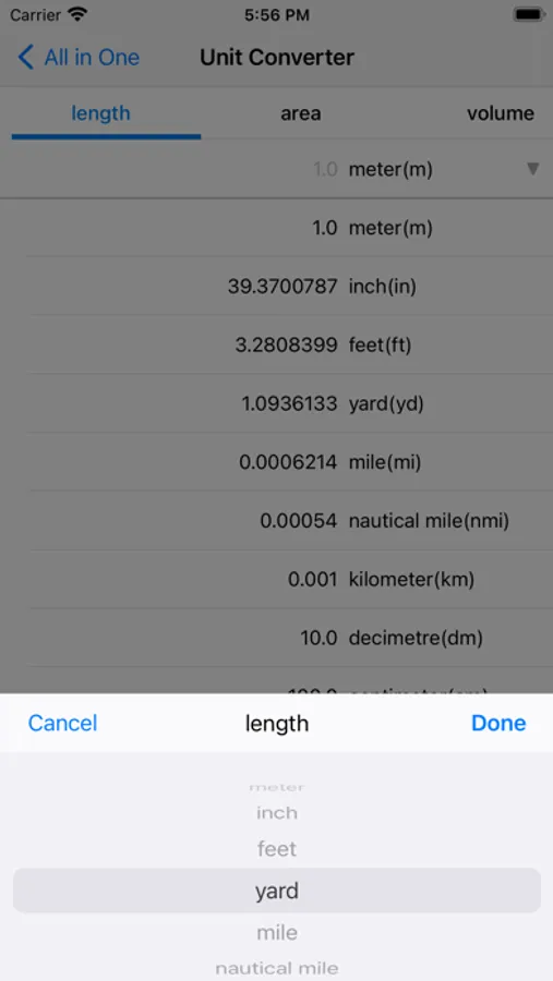 You can convert values between different units (including common units of length, area, volume, weight, temperature, pressure, power, energy)