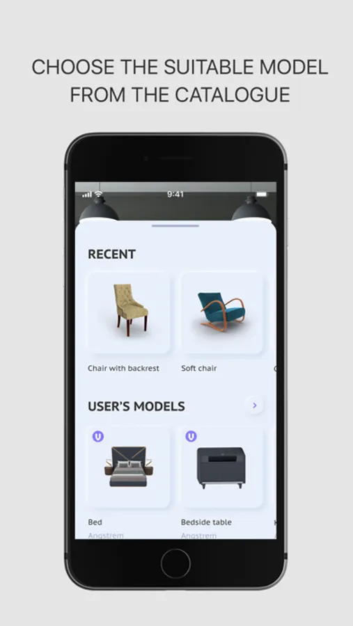 Take a photo of a virtual model in a real interior and share the result with friends and relatives via messengers.