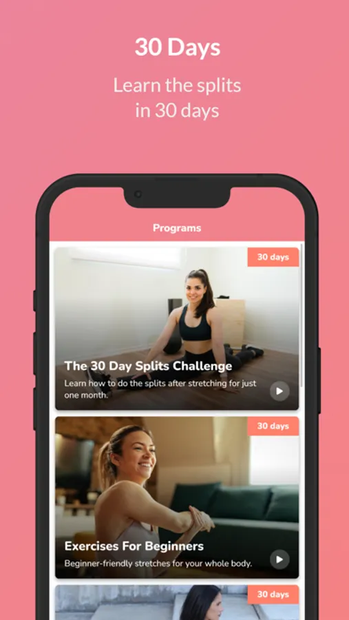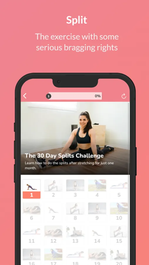 This 30-day program will help you increase your flexibility. The program utilises a mixture of active and passive stretching techniques to give you the fastest gains possible in the shortest time. While working on the splits you not only improve the flexibility of hamstrings, thighs, and hips but also promote better blood circulation to the areas most affected by the sedentary lifestyle.