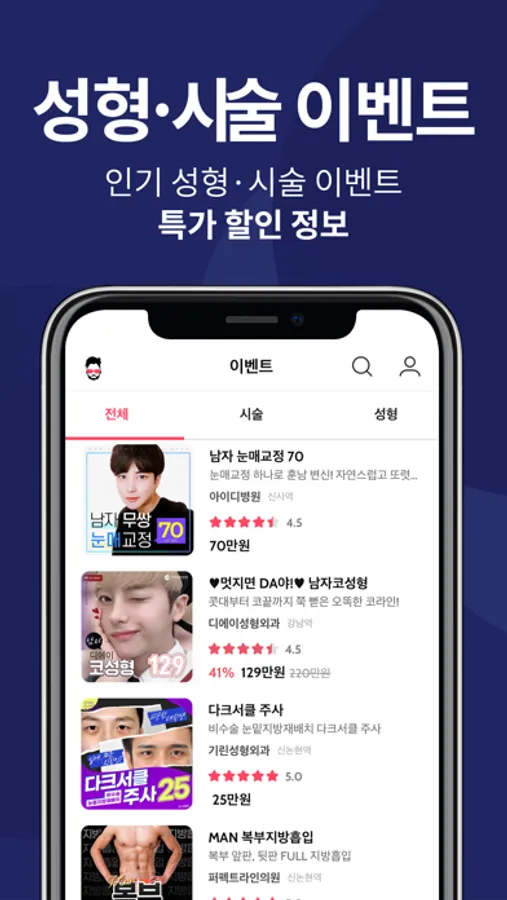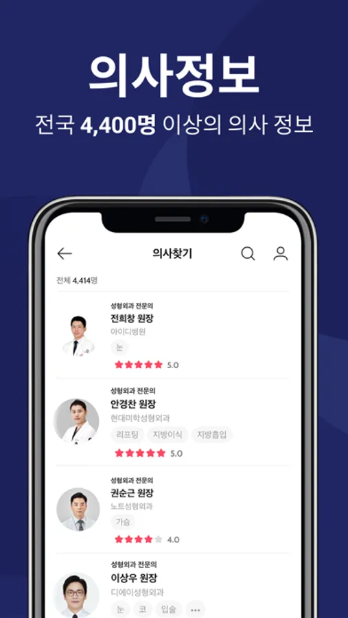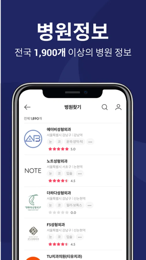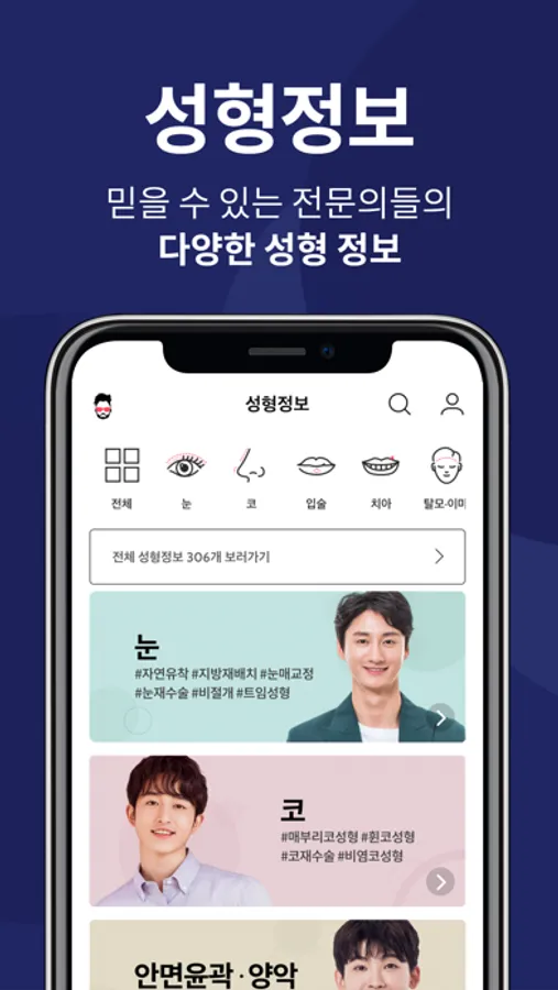● 검색하기 : 최신 업데이트된 시술 정보, 병원 정보, 의사 정보를 손쉽게 검색하여 볼 수 있어요.