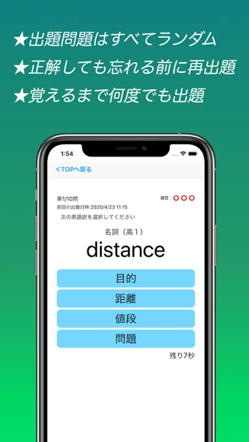 ゲーム感覚でテンポよく問題を解き、暗記した問題は殿堂入りに登録され、登録数が増えると新たな問題が出現します。