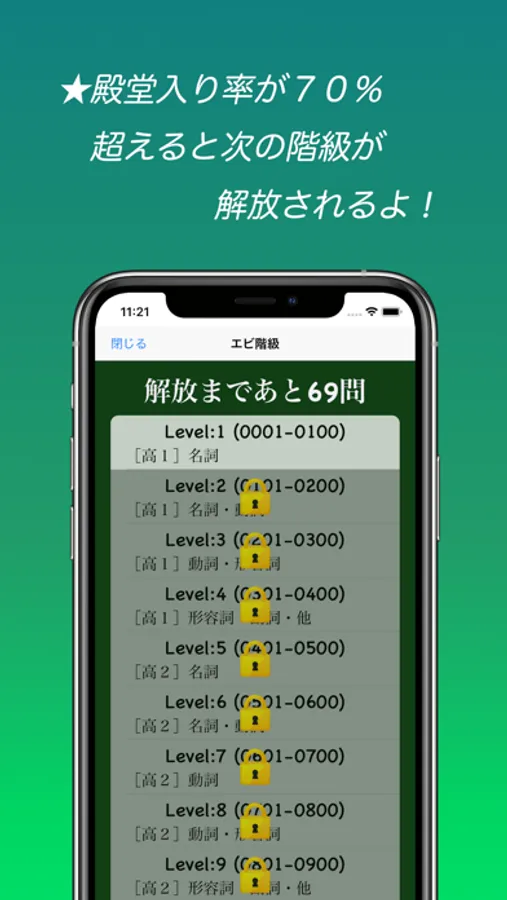 殿堂入り率が70%を超えると次の階級が解放され問題数が増加!