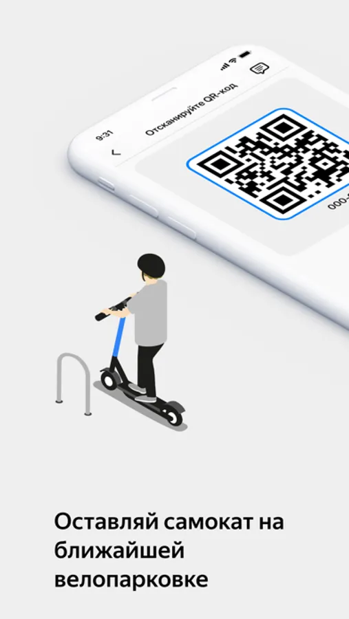 В доступной для поездок зоне на карте более 30 парковок, на которых стоят электросамокаты, выберите любой из них, отсканируйте QR-код или введите его номер в приложении.