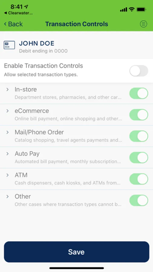 • With CardNav, you’ll get a real-time alert when your card is used outside of your preferences, giving you the power to deny the transaction or turn your card off.