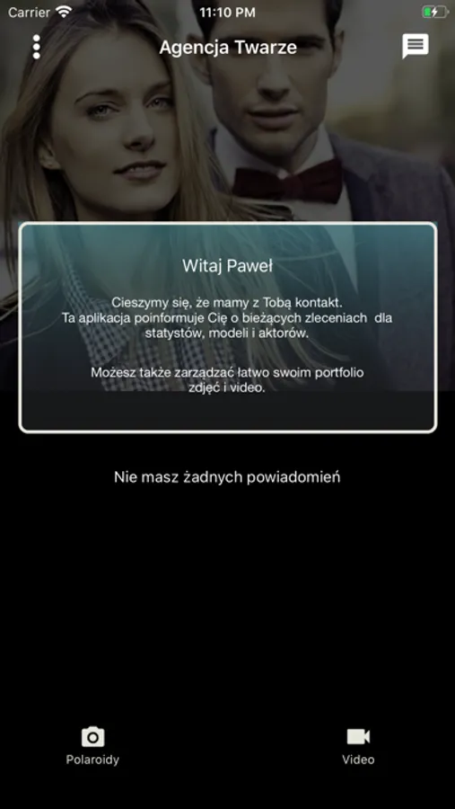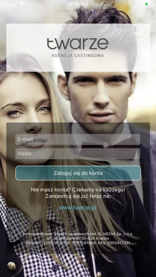 Aby korzystać z aplikacji należy założyć konto modela/statysty na stronie www.twarze.pl oraz uzupełnić dane profilowe (jak płeć, wiek, wymiary itp).