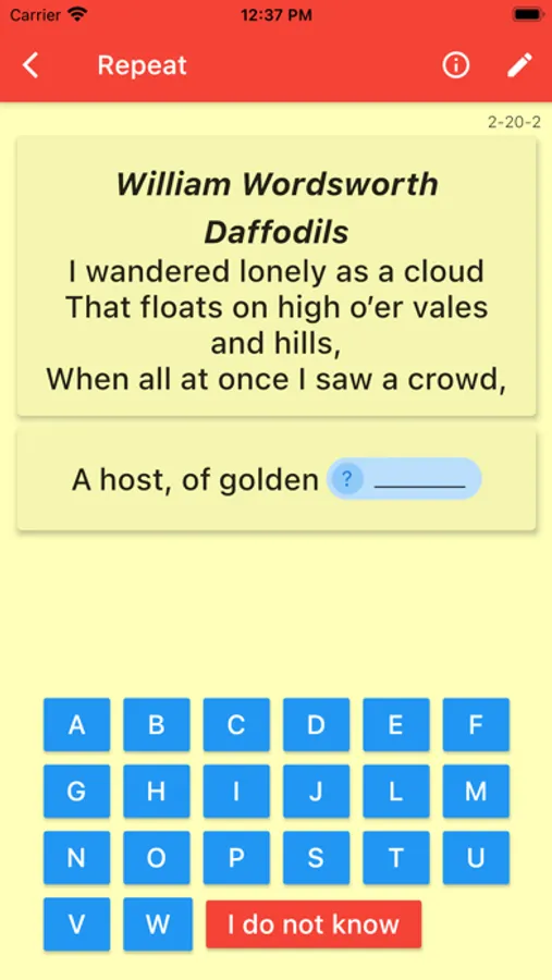 Learn poem and long texts with spaced repetition method. Try free online version on http://ranka.mobi/poem/