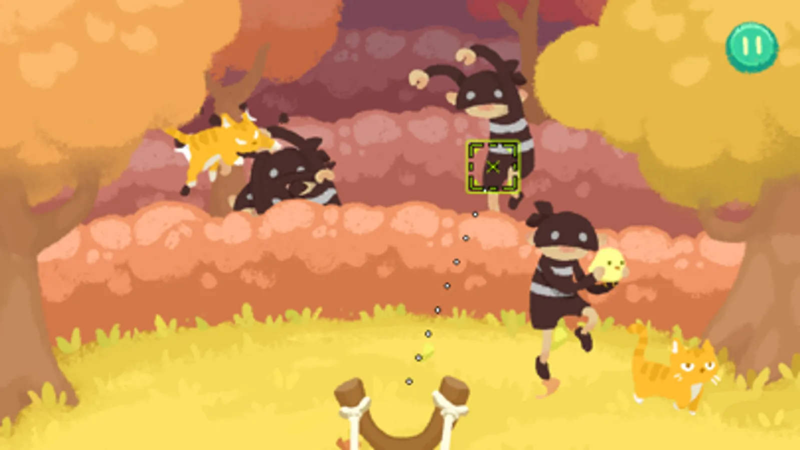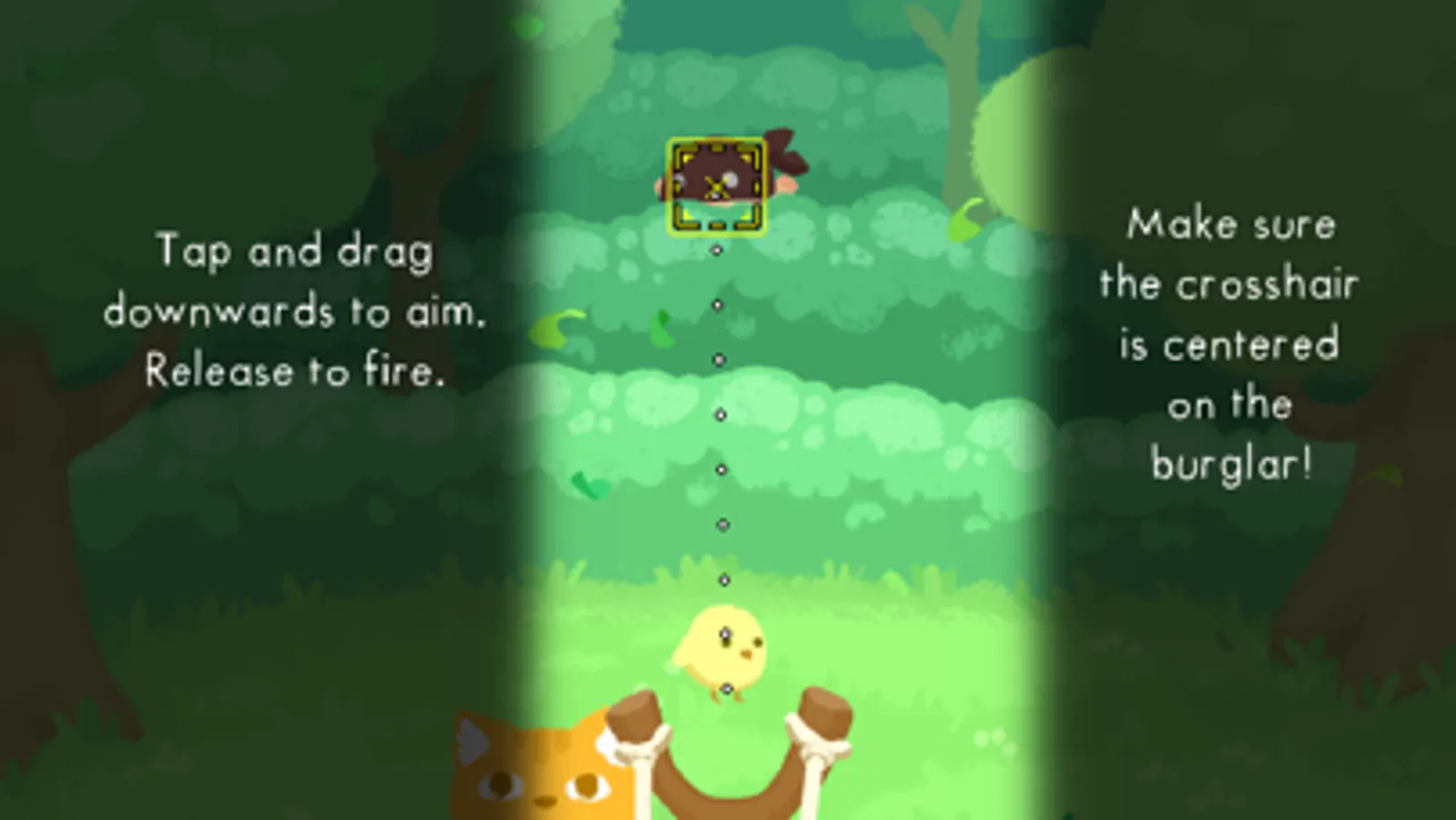 Launch meowmies with your slingshot to stop the birdie burglars!