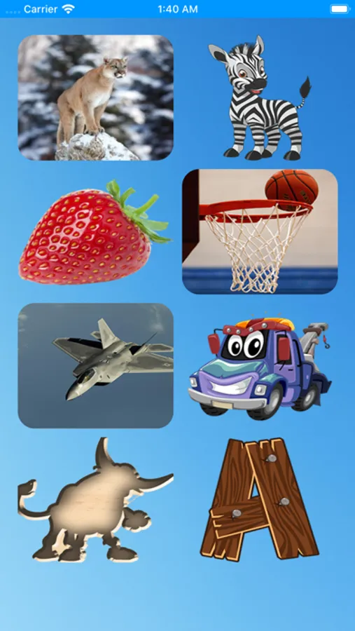 In addition, different themes can be selected for the game. 8 theme are available currently. These themes are animals, sports, foods, vehicles, alphabet and animal shadows.. Game sound on - off option is there.