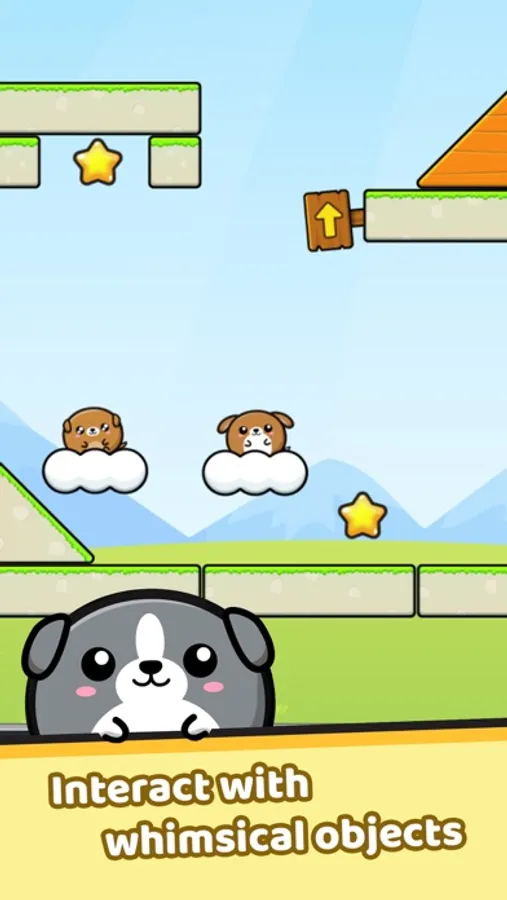 Explore worlds with whimsical objects that interact differently with your puppies.