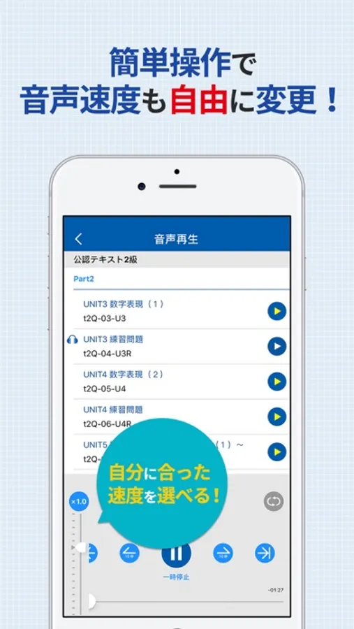 音声は単元ごとに区切ってあるので、学習したい音声をすぐに探すことができます!