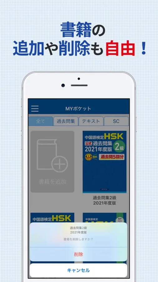 「MYポケット」ページで削除したい書籍を長押しすると、書籍を削除することができます。