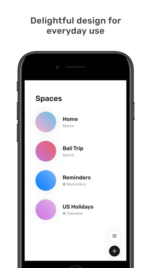 • Introducing Spaces: innovative custom lists for you to visually organize todos and events. Group your tasks, create itineraries, manage projects, plan vacations, and more: the possibilities are endless.