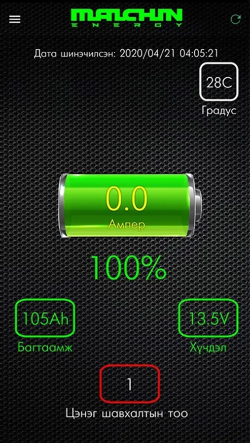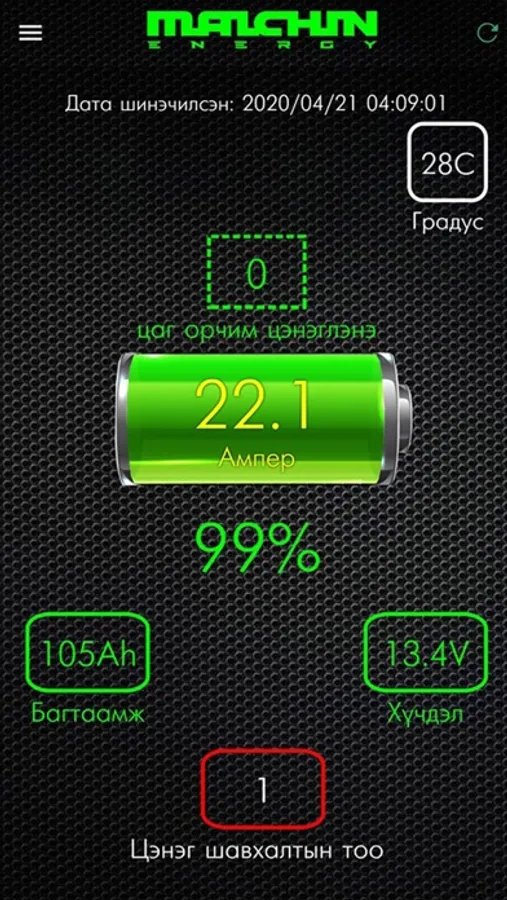 3. Тухайн батарейн Загвар, Серийн дугаар, Үйлдвэрлэсэн огноо, Үлдэгдэл цэнэг (Ah), батарейн бүрдэл хэсэг тус бүрийн хүчдэлийг харуулна.