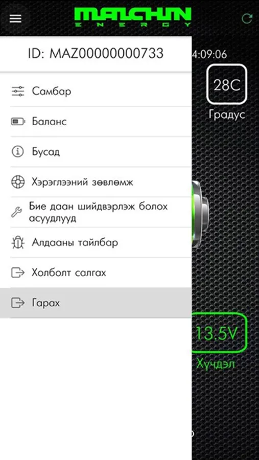 Литий ион төрлийн ухаалаг батарейтэй Bluetooth холболтоор холбогдож батарейн төлөв байдал, ашиглалтын талаар дэлгэрэнгүй мэдээллийг монгол хэлээр мэдээлэх ба хэрэглэгч тухайн үеийн батарейн цэнэгийн хэмжээ, цаг агаарын нөхцөлд тааруулж өөрийн хэрэглээг ухаалгаар зохицуулах боломж олгоно. Үүнд: Цэнэгийн хэмжээ (%), Багтаамж (Ah), Гүйдэл (A), Хүчдэл (V), Цэнэг шавхалтын тоо, Батарейн доторх температур(C). Энэ аппликэйшн зөвхөн MAZ-LION цувралын батарейнуудад хэрэглэгдэнэ.