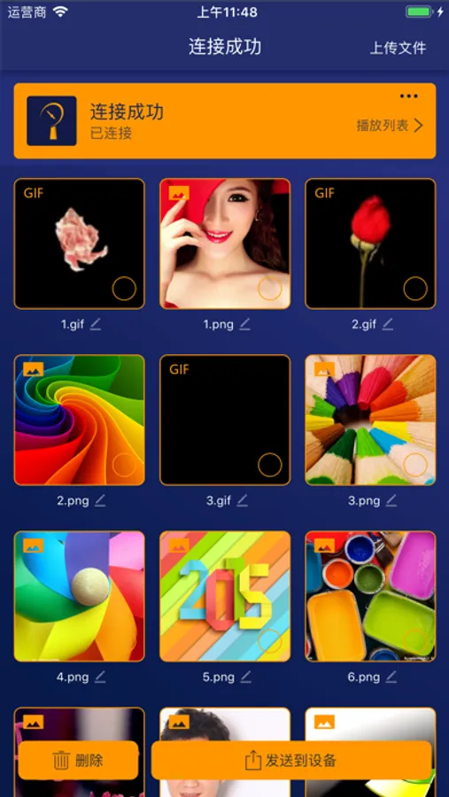 我们的用于控制手持风扇屏设备,通过WiFi与设备进行连接,能简单方便的给设备上传,删除,修改素材,并在设备播放时可修改播放列表,点播,设置播放次数等操作。
