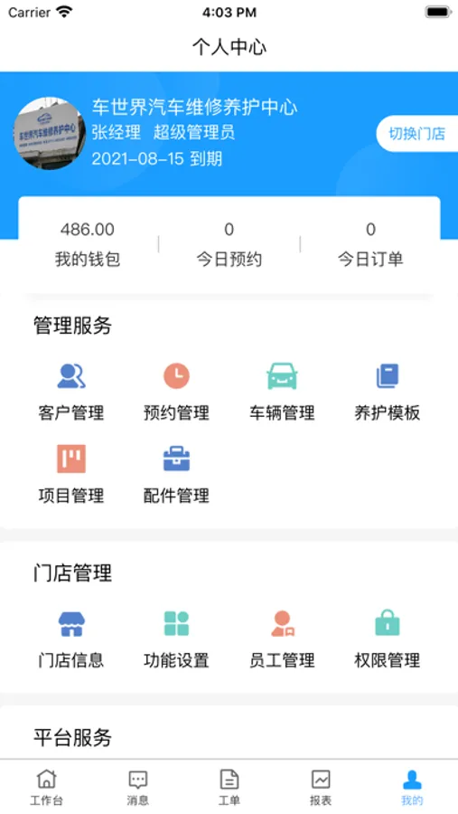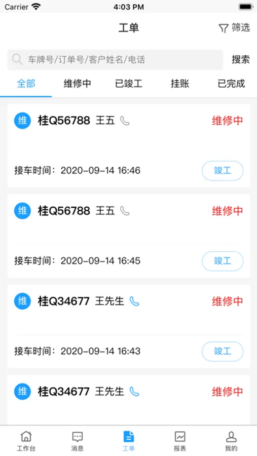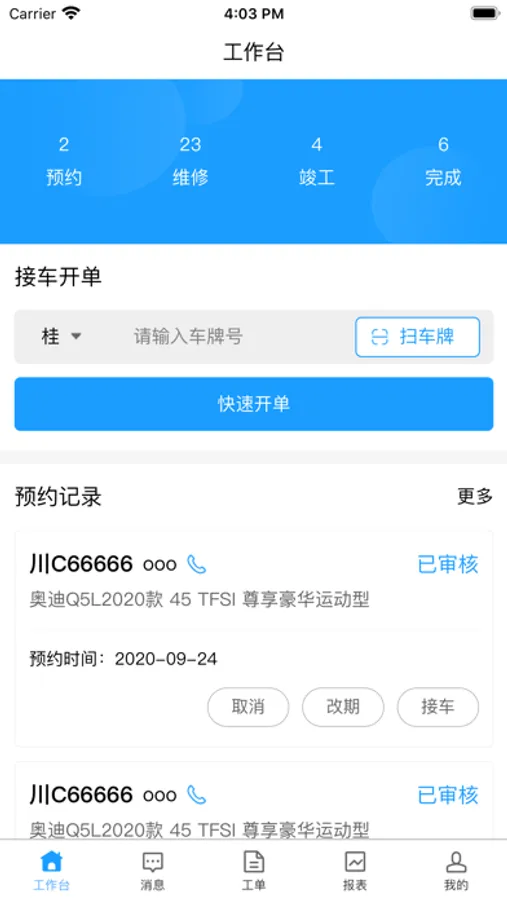 懂车汽修主要是帮助汽修商户做好门店管理,包括有客户CRM 管理、员工业绩绩效管理、维修汽车配件、实时的统计工单与经营收入等。同时,我们针对普通用户还开发了配套的微信小程序,方便用户在平台上预约服务。