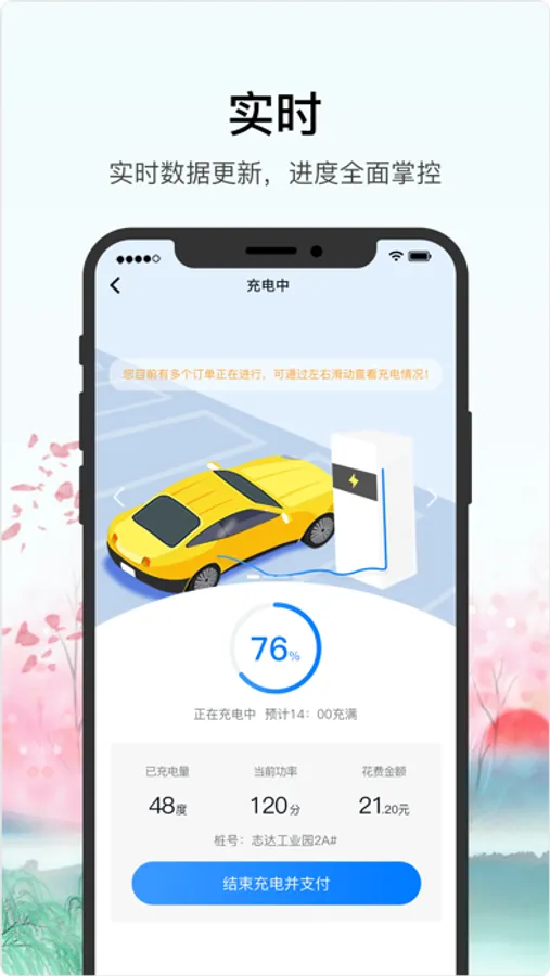 【实时充电信息】实时显示爱车充电电量,剩余时间,电池电量