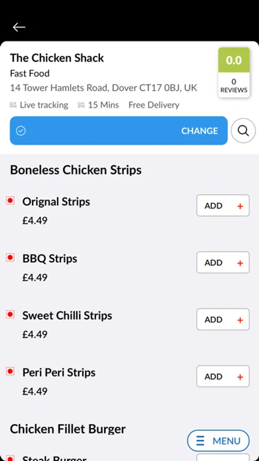 Freshly prepared fried chicken fillet burgers bbq Wings shakes and more.
