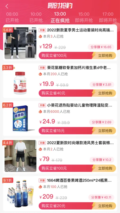 每天更新展现当天销量榜单商品和全天疯抢成交量TOP100的商品,供用户可以买到具有很高性价比的商品