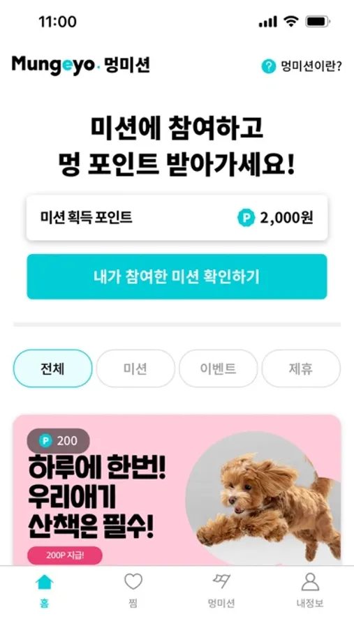 멍 미션을 참여하면 멍 포인트를 지급해드립니다.