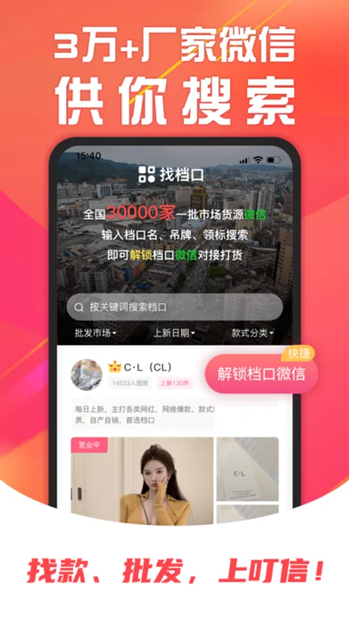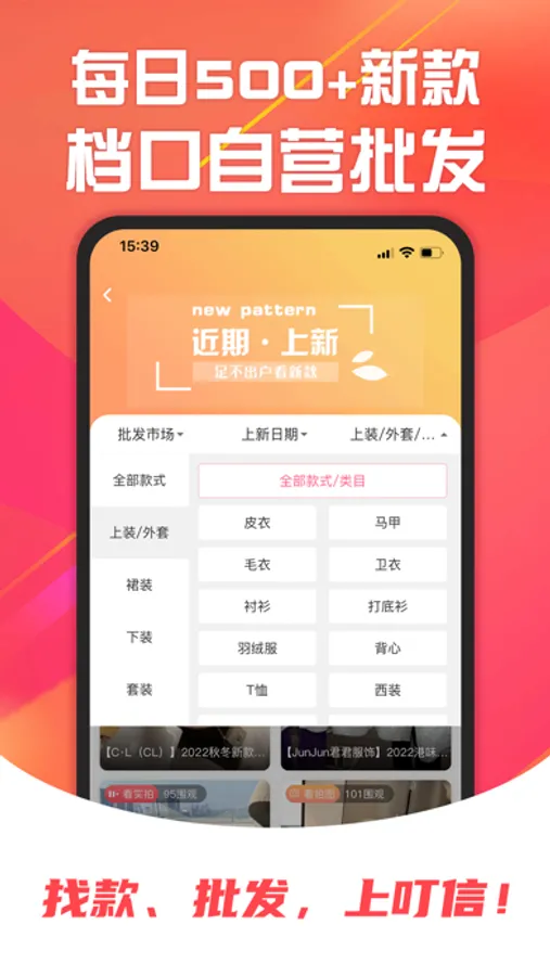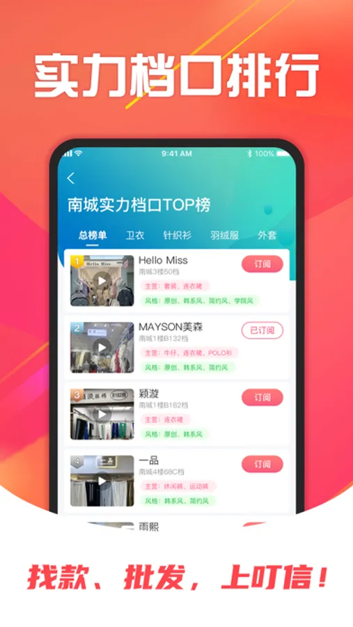 汇聚了沙河1000+实体服装批发档口,每日上新100+新款,随时随地了解市场最新款,更有线下团队帮你免费找新款,找档口!