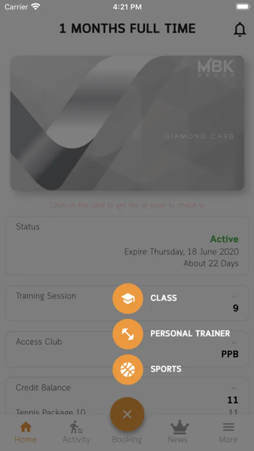 • Class Booking to allow member to book the class in the fitness club.