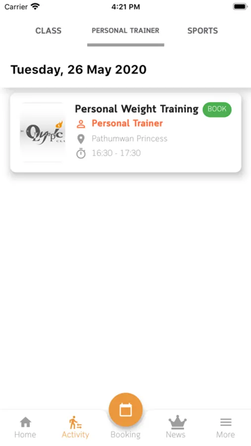 • Personal Training (PT) Booking to allow member to book Personal Trainer for each training session.