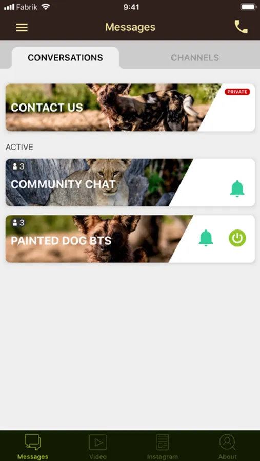 • Private and secure messaging channels with the Painted Dog TV team and other members.