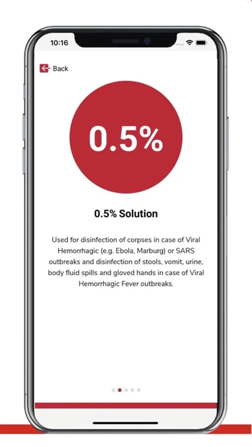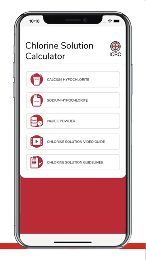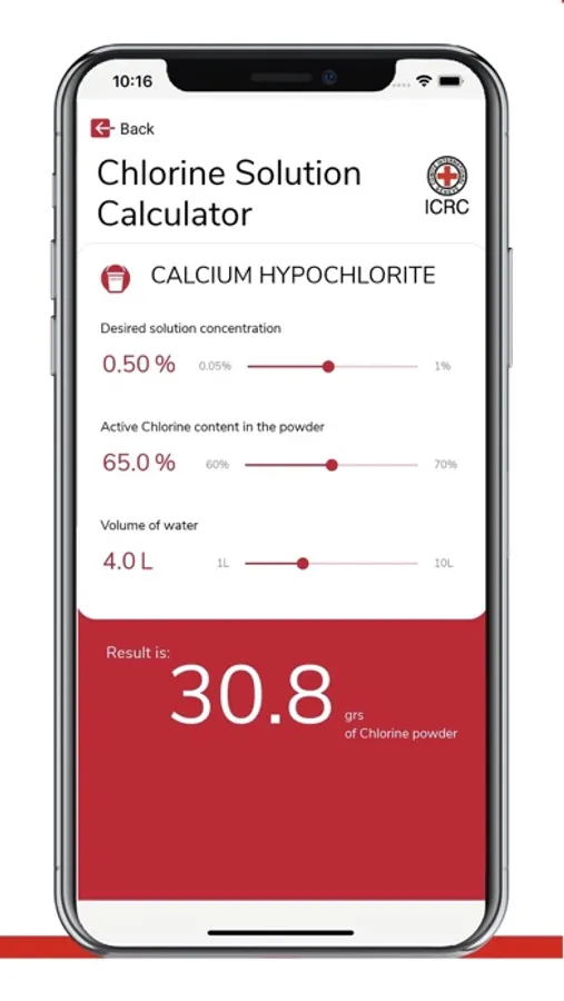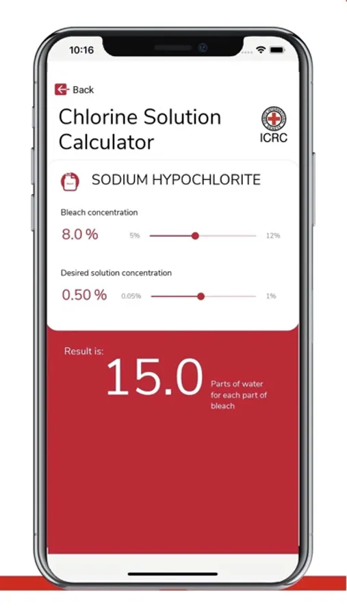 Accordingly, it calculates quantities in the preparation of an appropriate disinfectant solution starting from different chlorine-generating products. The APP also gives access to references and a training video.
