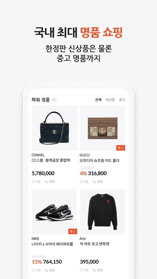 신상품부터 한정판, 중고 명품까지 한눈에 만나보세요!