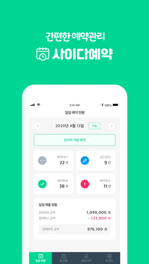 사이다 예약 앱을 통해 체계적으로 예약을 관리하고 매출을 한 눈에 확인하세요!!