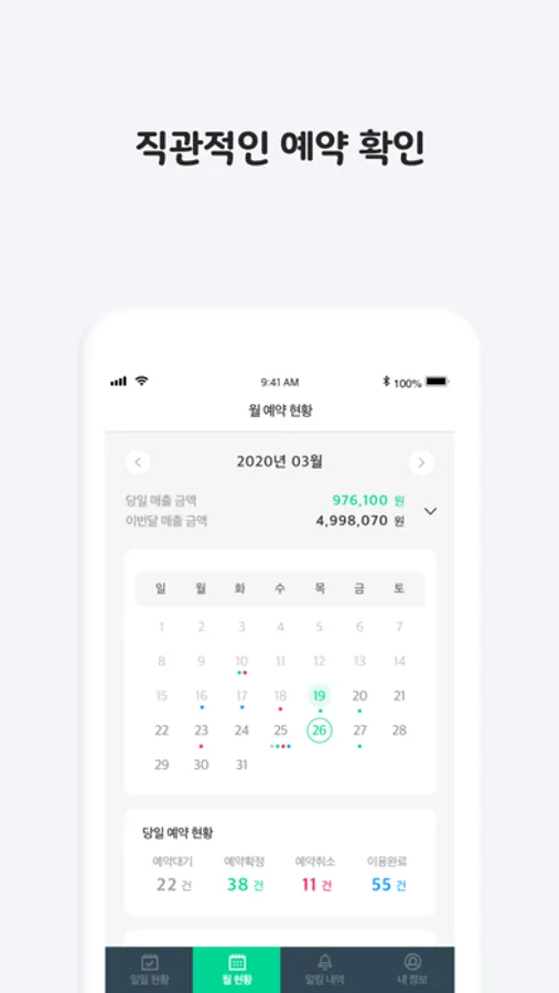 일일 예약 현황 / 월 예약 현황 화면 제공!