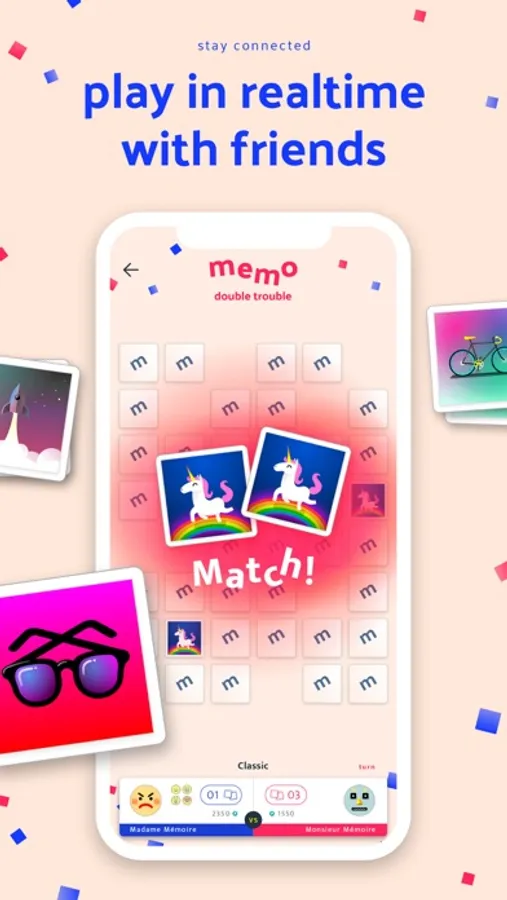 Who will find the right pair of images first? Keep your brain fit and stay connected with your friends.