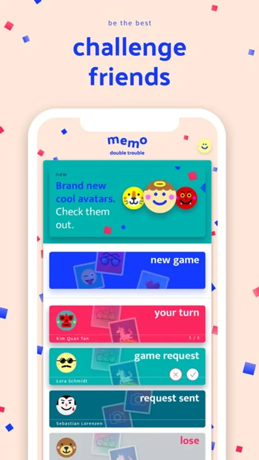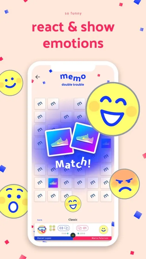 Play a heated game of Memo against your friends in real time. In addition to cool motifs, you can play with your photos and your friend's photos in Photo Mode. The funniest and most creative way to play Memo.