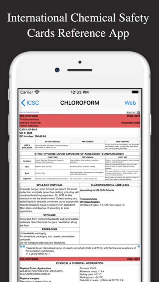 Use the information in this app to augment occupational health and safety when working with the applicable chemicals as an adjunct to msds or when msds are unavailable.