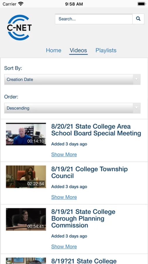 Programming includes local government and educational meetings, high school sports, concerts, lectures and community events. C-NET covers the meetings of seven Centre County municipalities, two school Districts, the Centre County Board of Commissioners, the Centre Regional Council Governments, several local Authorities, Schlow Centre Region Library and the Pennsylvania State University.