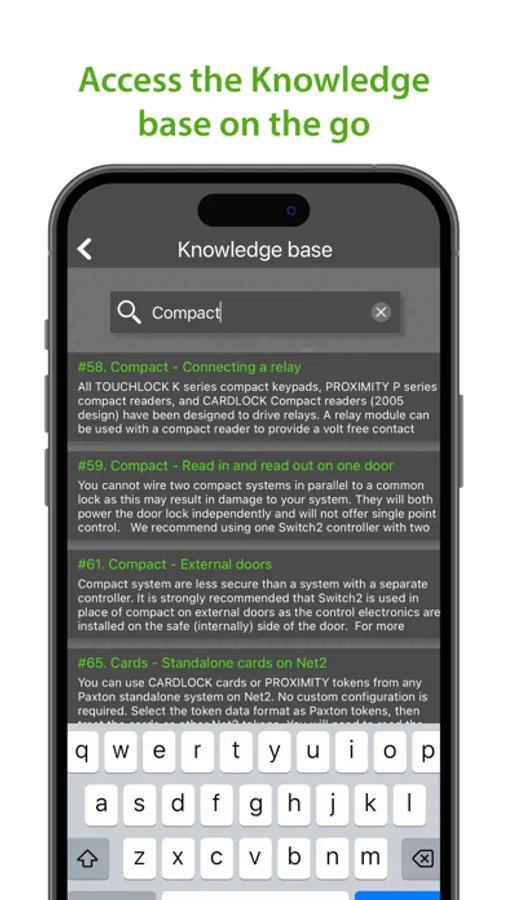 • Knowledge base - Search through our comprehensive knowledge base designed to help you troubleshoot common problems onsite.