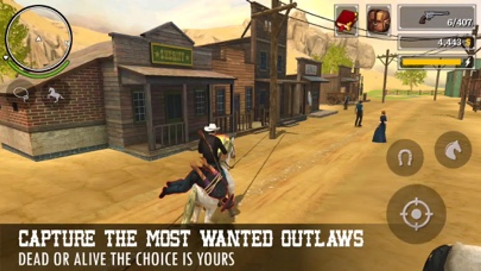 Become a bounty hunter and capture 33 of the most wanted criminals of the West. Use your weapons to defend yourself or equip your lasso to capture the outlaws. Dead or alive the choice is yours.