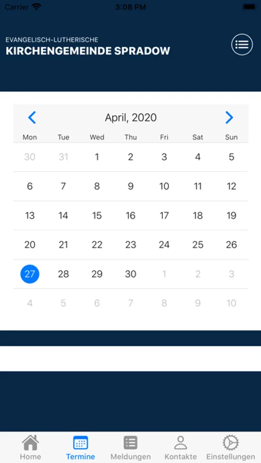 Auf der Startseite finden Sie eine Übersicht der kommenden Termine. Einen genauen Überblick über den gesamten Monat bietet die Kalenderfunktion.