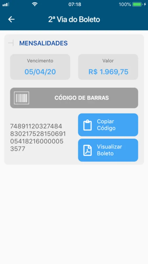 -- 2ª Via de Boleto(Emitir ou copiar código de barras);