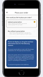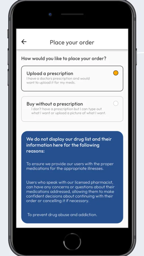 Place Order - The Place Order option enables you to easily upload images of your prescriptions/drugs. The option also enables you to enter your medications and attach the quantities that you may need for the medications.