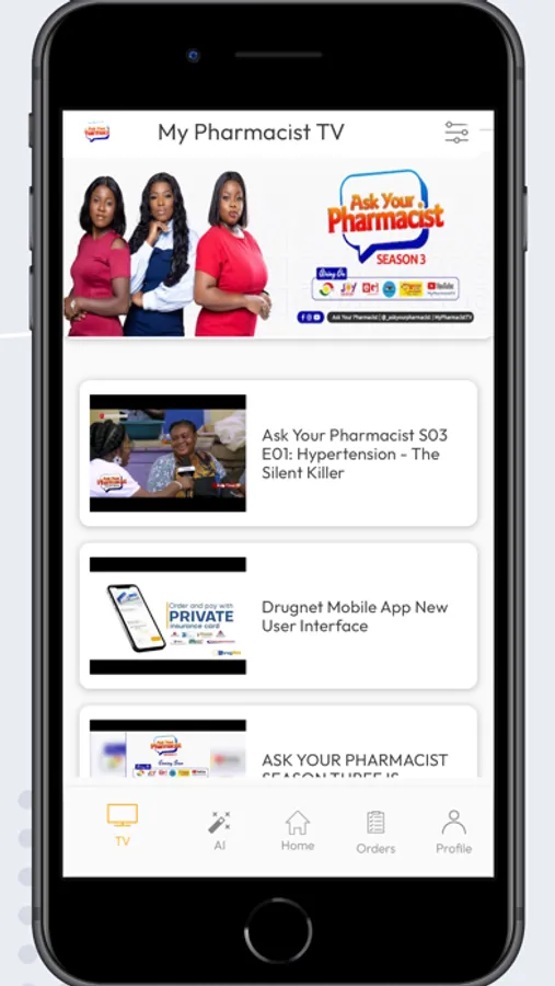 DrugNet TV - This option enables you to watch our educational content on rational use of drugs and other pertinent health topics.