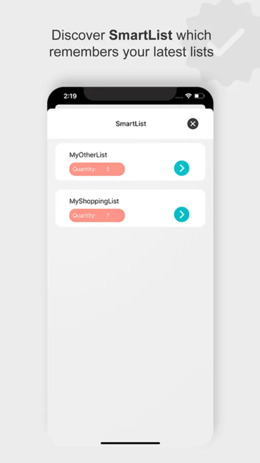 This application uses SmartList technology which allows you to keep in memory your latest lists. To use it, simply select a catalog of your choice or create a list that you named when you last used it.