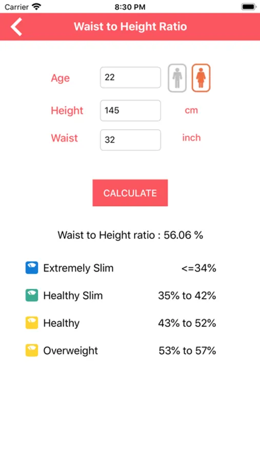is a fitness app that helps in weight loss and lets you Calculate BMI (Body Mass Index), BMR (metabolic rate), Body fat Percentage & waist to height ratio of your body.
