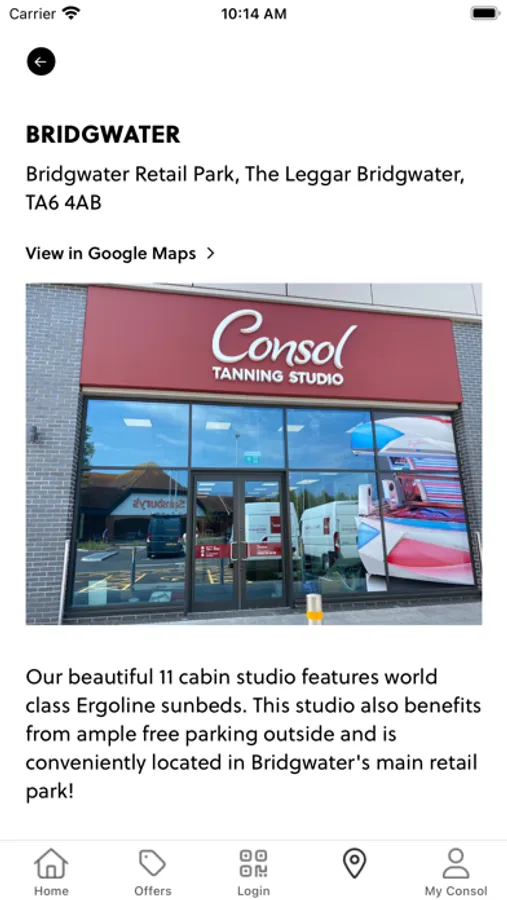 Find your nearest Consol studio simply by allowing the app to access your current location. It'll find the studio closest to you and its opening times, busiest hours and sunbeds available in the studio.