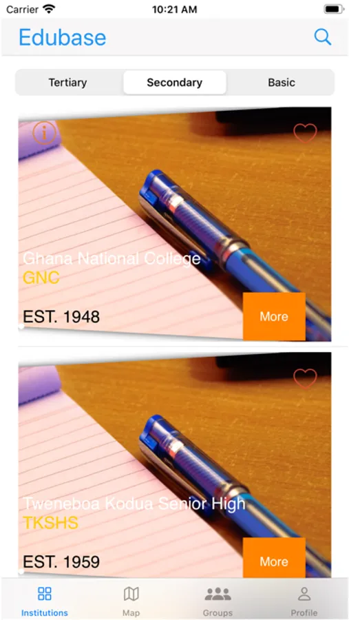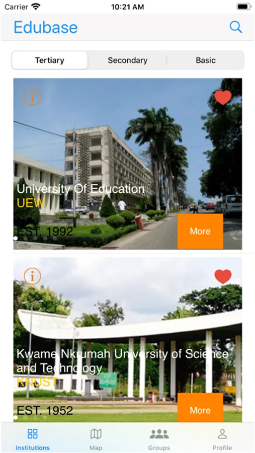 Edubase is an app informing you about Ghanaian educational institutions and the latest happenings in the Ghanaian educational system from high schools to colleges and universities, with available programs from Certificate through Diploma, Bachelors, Masters and Doctorate.