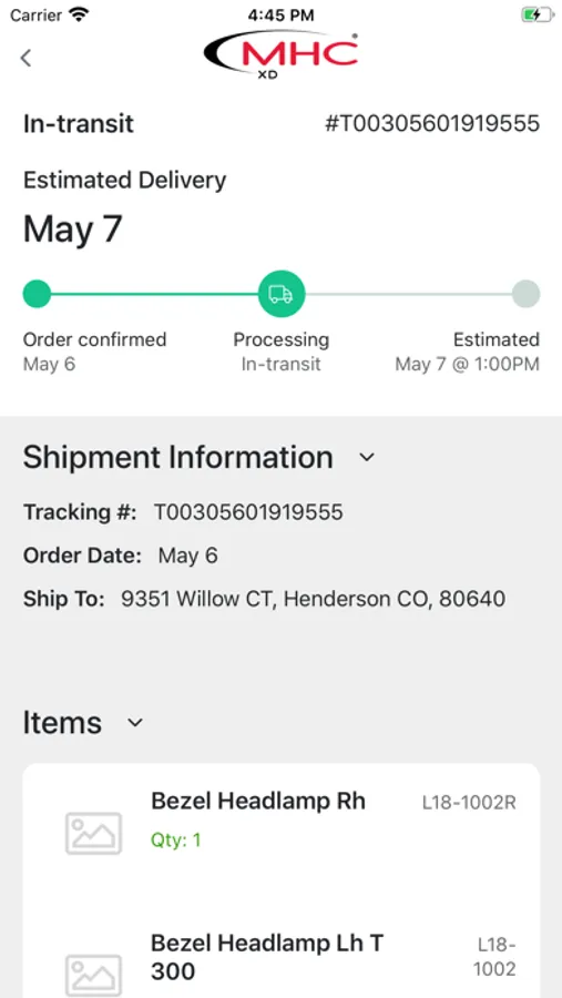 The MHC XD app provides a quick and easy way to track all of your company’s orders from MHC. From the moment your order is confirmed to the time it arrives at your shop, you will have the peace of mind of knowing where it is.